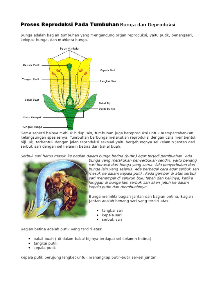 Alat kelamin betina gynaecium yang pada bunga merupakan bagian yang biasanya disebut putik pistilum juga putik terdiri atas metamorfosis daun yang disebut daun buah carpella. Anter biasanya terdiri dari empat kotak sari disebut mikrosporangia. No Bagian Bunga Fungsi 1 benang sari Menghasilkan serbuk sari untuk perkembangbiakan.