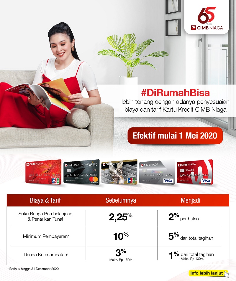 Per Juni 2017 suku bungan kartu kredit CIMB Niaga turun dari 295 menjadi 225 seiring dengan ketentuan yang diberlakukan oleh.