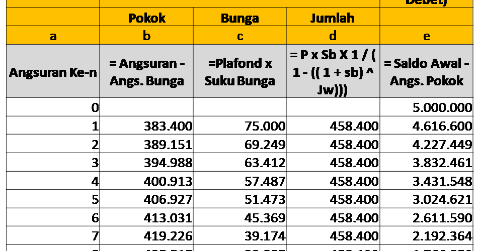 Cicilan Pokok bulan ke-z-1 i 12 Cicilan Pokok bulan ke-z Angsuran per bulan - bunga bulan ke-z. Perhitungan ini diterapkan ketika menghitung bunga terutang akibat keterlambatan pembayaran kepada kreditor pelanggan atau pemasok. Kini kamu tidak.