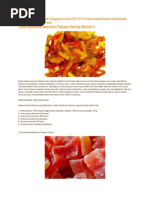 1 sendok makan kapur siri. Potong sesuai selera dan rendam dengan air yang telah dicampur dengan kapur sirih selama 12 jam. Selanjutnya Moms juga bisa membuat manisan buah dengan bahan pepaya sederhana.